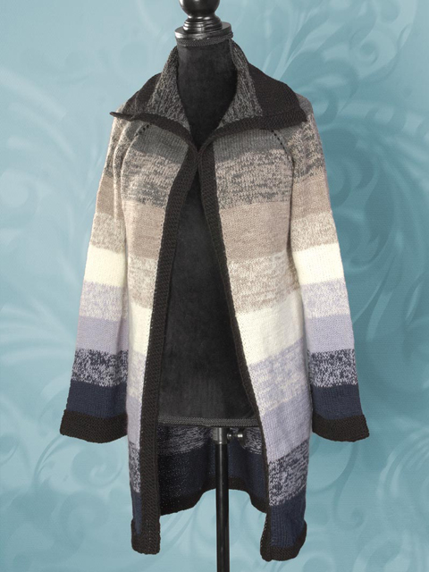 Jesienny sweter w paski w stylu płaszczyka z włóczki Alize Lanagold 800 – pobierz pdf: