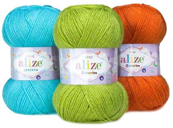 Alize Şekerim Bebe Bardzo miła w dotyku czysto akrylowa włóczka średniej grubości. Piękne pastelowe kolory dobrane specjalnie na wyroby dla najmłodszych.